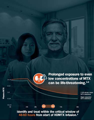 Only Voraxaze® (glucarpidase) can lower methotrexate (MTX) levels by ≥97% in 15 minutes, reducing the risk for severe toxicities and death.1,3,4,5